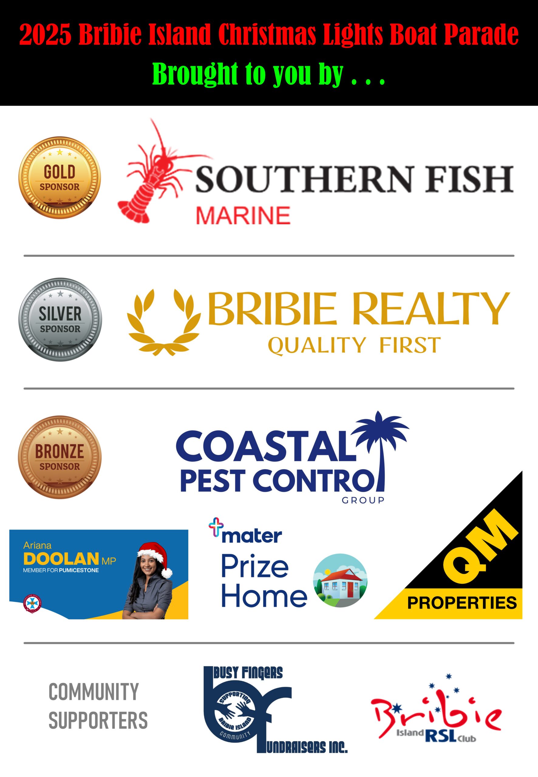 WE THANK THE GENEROUS SPONSORS OF THE 2025 BRIBIE CLASSIC BOAT REGATTA FOR MAKING QUEENSLAND’S LARGEST GATHERING OF CLASSIC BOATS POSSIBLE
